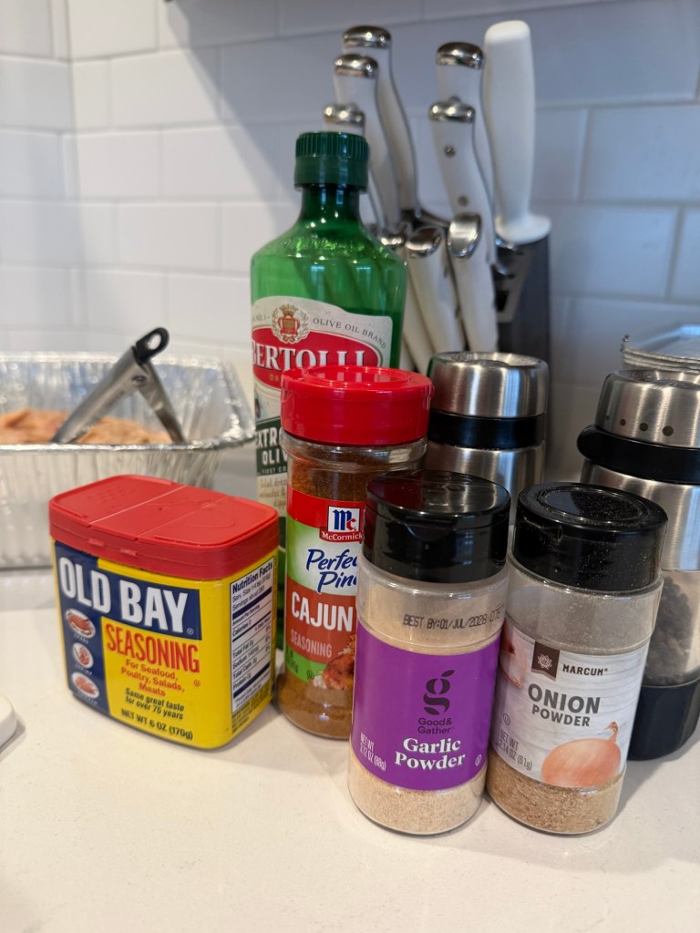 - Spices (Old Bay, Garlic Powder, Salt, Pepper, paprika and any other favorite seasonings)