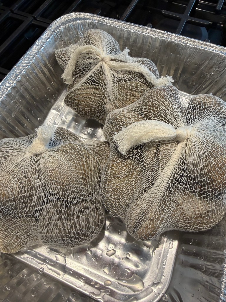 - cooking nets for clams and all other food in steam pot (ask for extras when ordering from seafood market)