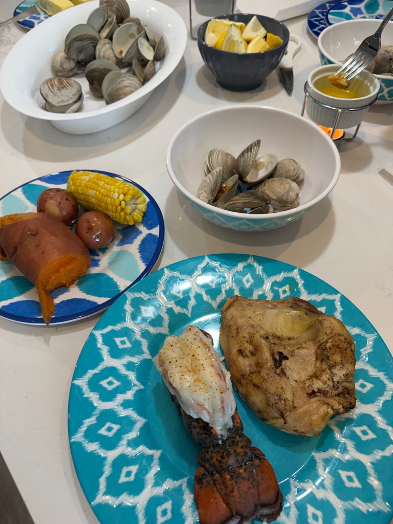 Once the bake is ready — everyone gathers around, and we always start with the clams and lobster 🦞